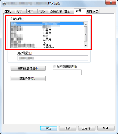 打开传真驱动程序的[配置]选项,并确保已正确设置用户认证或账户跟踪。