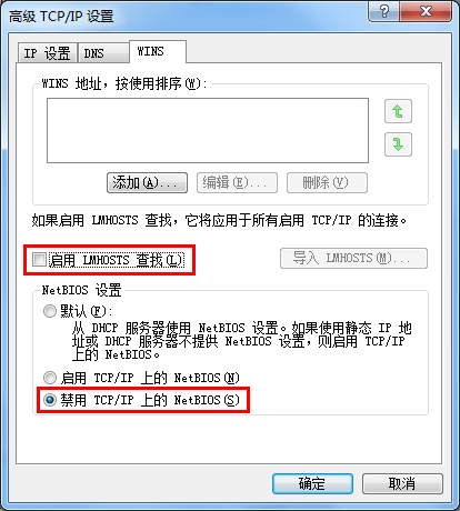 清除[启用 LMHOSTS 查找]复选框。