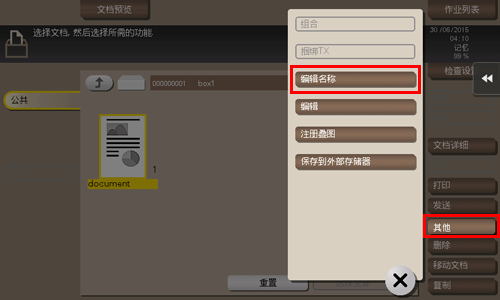 触摸[用户Box],选择用户Box,然后触摸[打开]。