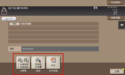 可以更改[分辨率]、[色彩]和[文件类型]的设置。