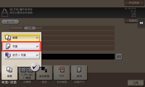 触摸[单面/双面],然后触摸[双面]。