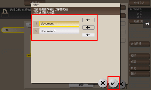 根据需要更改打印或发送文件的顺序,然后触摸[