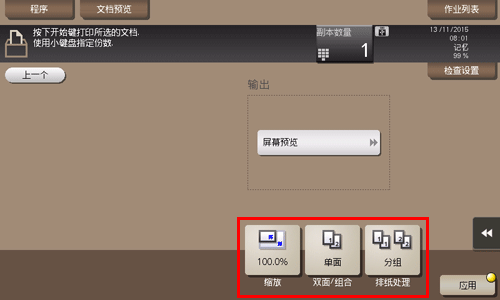 [分组/分页] | [组] | 每个页面输出一个以上复印件份数。 |