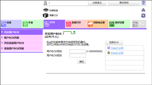 打印/发送用户Box中的文件。