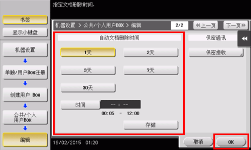 也可以在注册用户Box时设置用户Box的文件保留期。