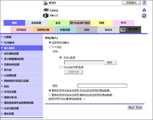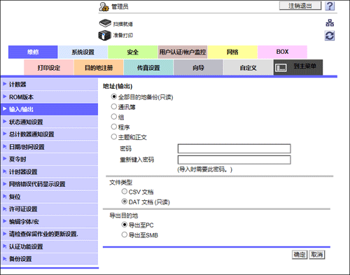 如果导出时输入密码,那么将目的地导入其它MFP时也需要输入密码。