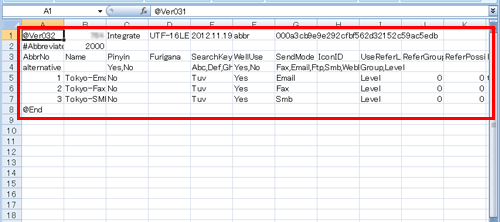 导入[地址]时,如果选择了[更新的项目仅包含注册号,无地址和注册号的原始数据。],在仅包含一个注册号码要导入文件中的地址信息不会注册在机器中。如果选择了[更新的项目仅包含注册号,删除地址和注册号的原始数据。],仅包含一个注册号码的地址信息会从机器中删除。