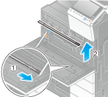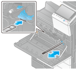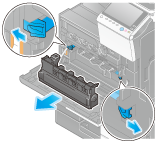 释放废粉盒锁定杆,然后拆下废粉盒。