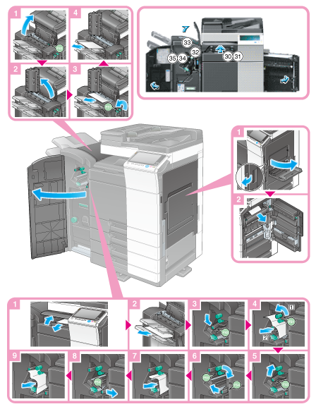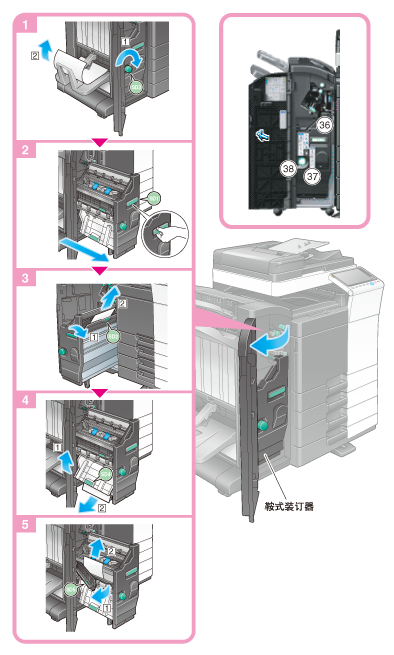 根据[排纸处理]的设置,排纸处理器的内部部分容易发生卡纸。