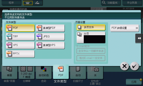 [E-mail附件] | 当[页面设置]设置为[分页]时,可以选择E-Mail附件方式。