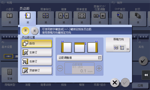 选择纸张装订位置并调整复印的装订宽度(边距)。