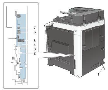 6 | 网络连接器(10Base-T/100Base-TX/1000Base-T) | 将本机用作网络打印机或网络扫描仪时连接到此端口。 |
