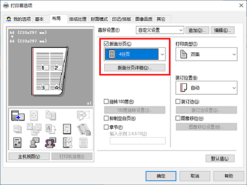 如果将此功能与合并功能([版面分页]:"N分页")组合使用可以节省更多纸张。