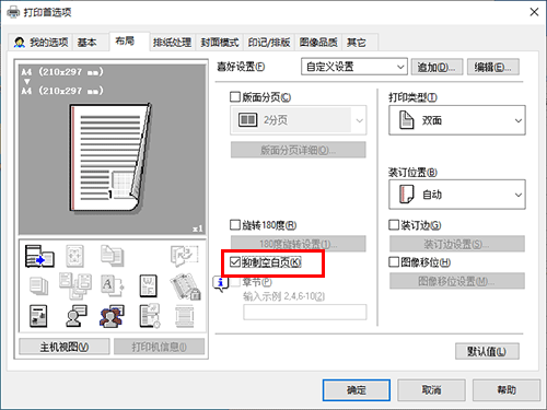 打印原稿时跳过原稿中包含的空白页。可以减少打印页数。