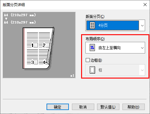 必要时单击[版面分页详细...]设置页面布局顺序以及是否在页间输入边框线。