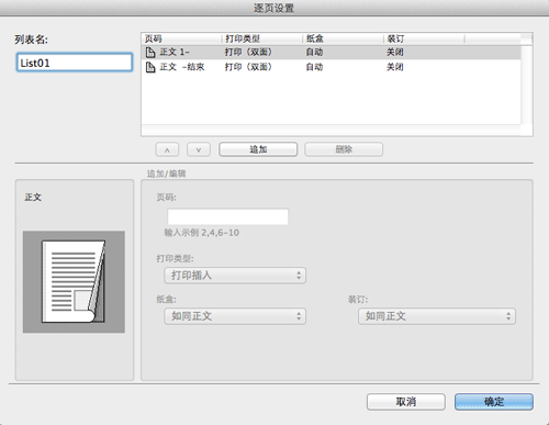 事先创建一个指定每页的纸张和打印设置的列表。当在插入的纸张上打印时,选择打印时要应用的列表。