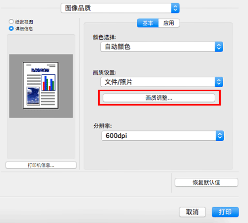 在[图像品质]中单击[画质调整...]。