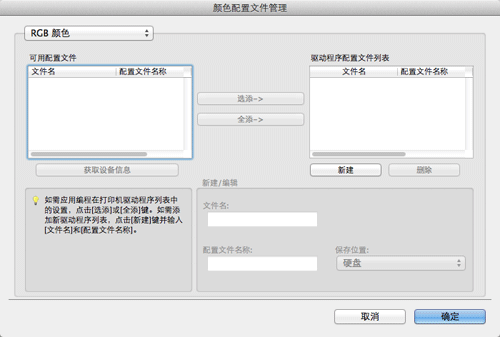 若要使用本机中注册的ICC配置文件进行打印,需要事先将ICC配置文件添加到打印机驱动程序中。