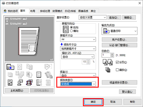 从[纸张类型]选择相关纸张类型,然后单击[确定]。