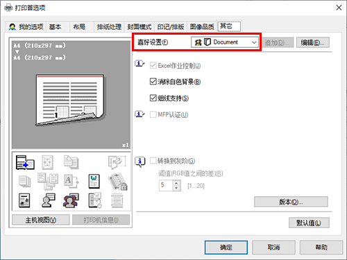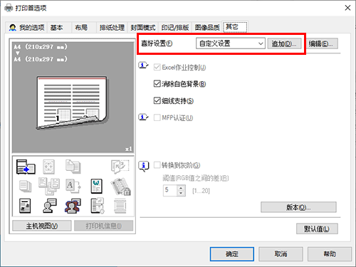 答案. 可以。您可以从打印机驱动程序的属性窗口轻松定制窗口,方法是在我的选项上批量注册常用功能,或者在相应选项卡上将设置注册为偏好以便快速激活。