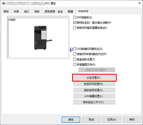 在[初始设定]选项中,单击[认证设置...]。