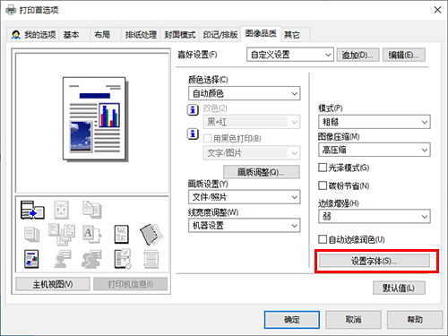 在[图像品质]选项中,单击[设置字体]。