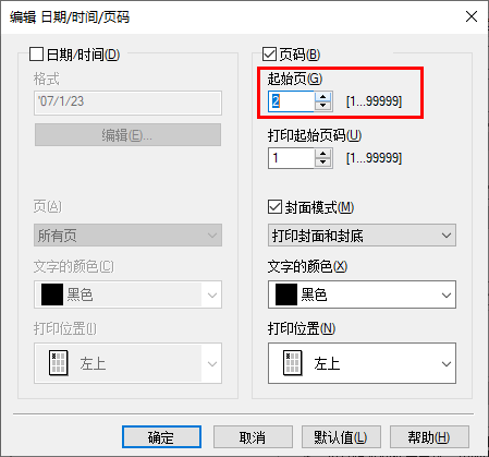 单击[编辑...]设置要打印页眉/页脚的起始页面和其他设置。