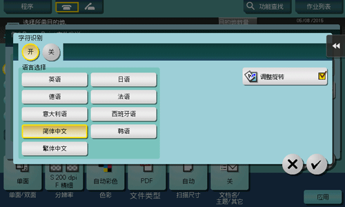 [语言选择] | 选择要进行OCR处理的语言。 选择原稿中使用的语言以正确识别文本数据。 | |