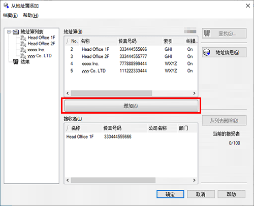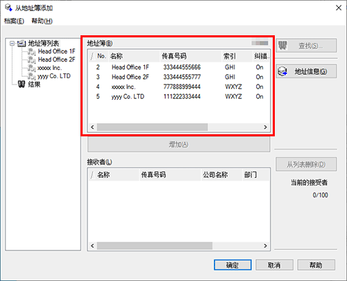 从[地址簿]列表选择接收者,然后单击[增加]。