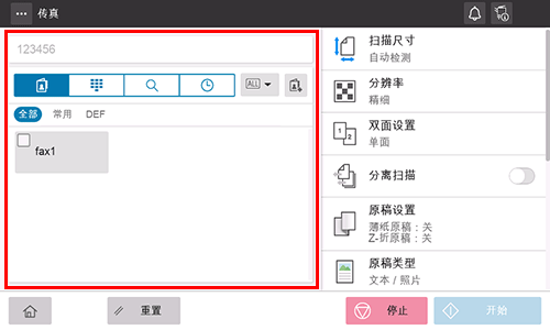 )中,可以从历史记录中选择一个传真目的地发送传真。
