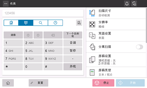 输入目的地的传真号码,然后触摸[下一个目的地]。