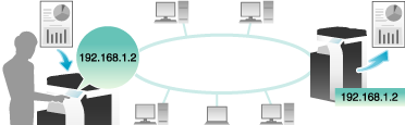 在局域网中,可以使用IP地址传真功能。对于IP地址传真,指定目的地传真机的IP地址、主机名或E-mail地址以直接将传真发送到该目的地。不需要通过邮件服务器来完成。