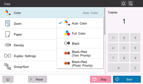 [Full Color] | Makes a copy in full color regardless of whether the scanned original is in color or in black and white. |