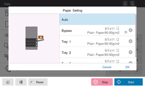Selecting [Auto] automatically selects a tray that contains paper of the same size as the original.