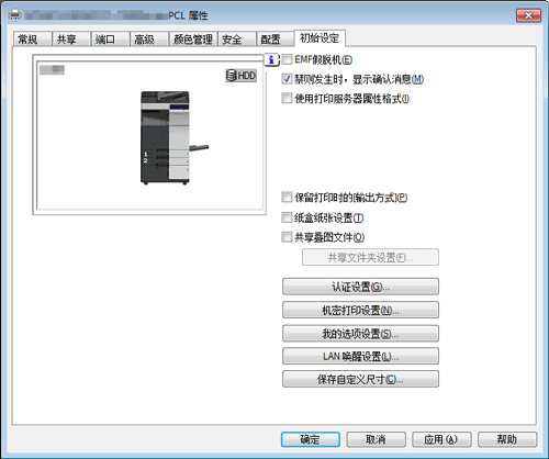 [EMF假脱机] | 当自己的系统环境中需要缓存元文件(EMF)时选择此复选框。 |
