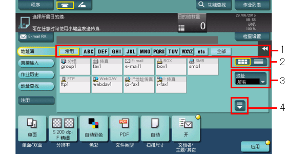如果选择了多个目的地,可以通过广播发送来发送数据。也可以使用将不同发送模式如扫描至E-Mail和SMB发送组合在一起的广播发送。