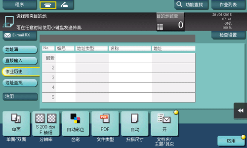 在[作业历史]中,从扫描传输目的地或保存的目的地历史记录中选择一个目的地。