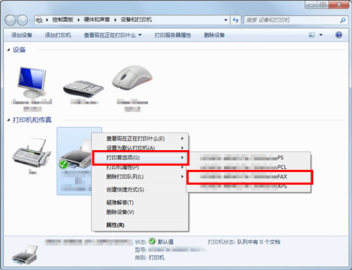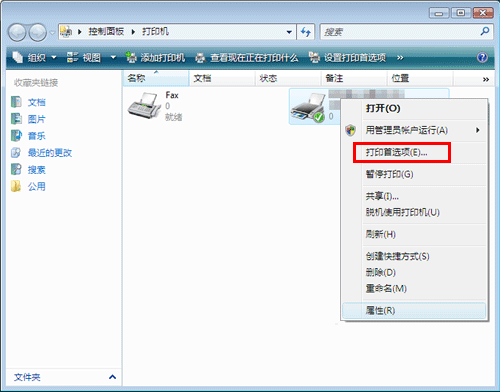 在Windows Server 2008中,右键单击所安装打印机的图标,然后单击[打印首选项...]。