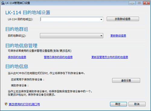 可以通过使用LK-114_ManagerPort保存目的地信息根据想要执行无伺服拉式打印的地点切换目的地无伺服拉式打印群组。