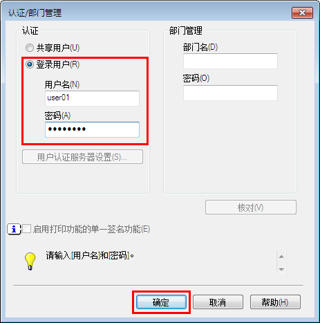 选择[登录用户],输入使用机器注册的[用户名]和[密码],然后单击[确定],
