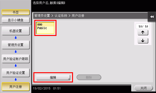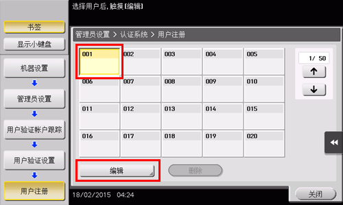 选择[用户验证/帐户跟踪]-[用户认证设置]-[用户注册]。