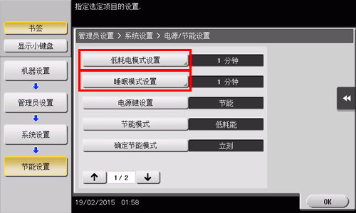 如果在[电源/节能设置]中为[低耗电模式设置]或[睡眠模式设置]选择了"1分钟",此按钮将不会显示。