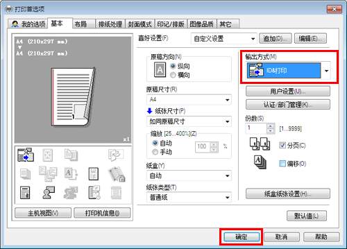 从[输出方式]选择[ID&打印],然后单击[确定]。