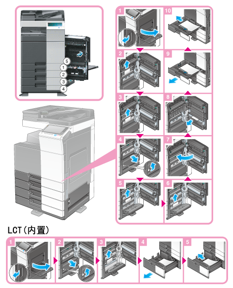 清除纸盒(纸盒3/4) 中的纸片时:(仅在bizhub C658/C558/C458中)