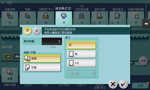 选择[开]同时发送和打印。