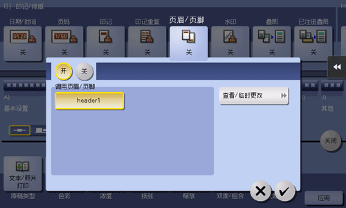 在指定页的顶部和底部页边(页眉/页脚)添加日期、时间及其他所需的文本。但必须事先在本机上注册要添加到页眉和页脚的信息。