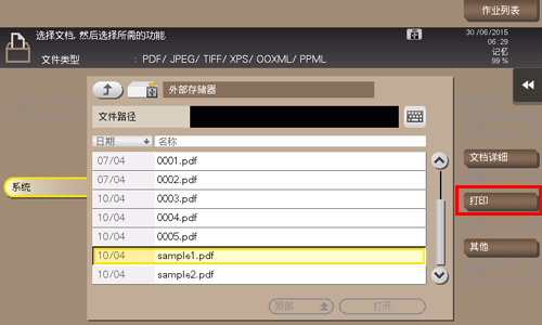 触摸[从外部存储器打印文档.]。