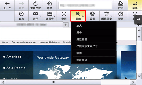 [字符代码] | 更改字符代码。字符代码选择屏幕针对要显示的每个区域进行分组。 如果检测到任何乱码,指定任意字符代码,然后切换网页显示以解决此错误。 |