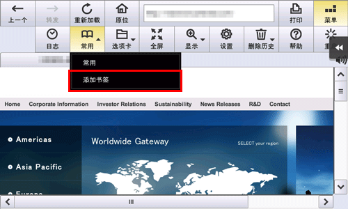 显示作为偏好页面进行添加的页面,然后触摸[菜单]-[常用]-[添加书签]。必要时,更改页面标题,然后触摸[确定]。