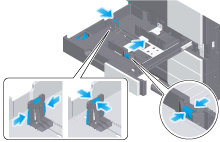 对于纸盒1,将附件安装在横向导板上,然后滑动横向导板。